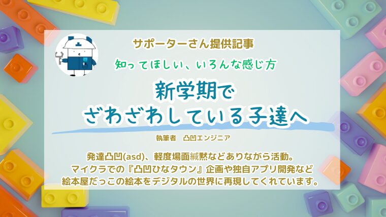 絵本屋だっこでデジタルサポーターをさせていただいている「凸凹エンジニア」と申します🙇発達障害当事者です。(自閉スペクトラム症、軽度場面緘黙、聴覚情報処理障害の疑い)